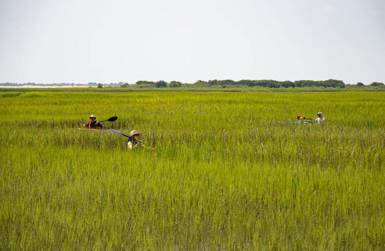 Kayakers return to Wise Point, Va., through a maze of salt marsh.
